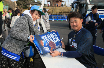 西武・松坂 即席サイン会…うっかり14年前の背番号「18」と書き間違いも