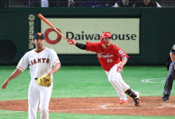 誠也 22号2ラン&23号3ラン バックスクリーン2発で岡本に2差、大山に3差と猛追