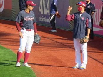 楽天・小深田と石井GM兼監督が異例のコラボ 「コブ締め一本釣り」グッズ完成