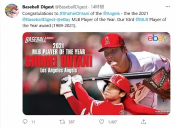 エンゼルス・大谷 MVP前哨戦で圧勝 19人中16人が1位に投票 野手部門最優秀選手