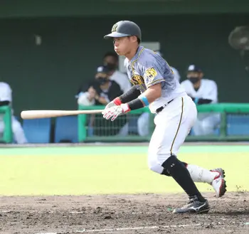 阪神・島田 途中出場で勝ち越し打! 一塁手の前でバウンド変わる