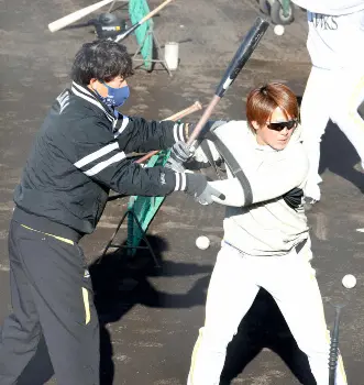甲斐、右足で打て! ソフトB・城島アドバイザーがみっちり指導 1日だけで4度の打撃練習