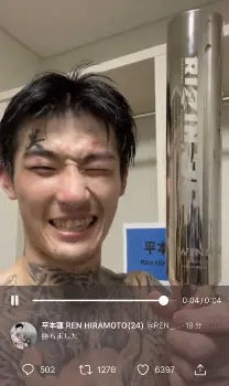 平本蓮 MMA初勝利直後の控室で勝利者トロフィーを手に「皆さん勝ちました」と動画投稿