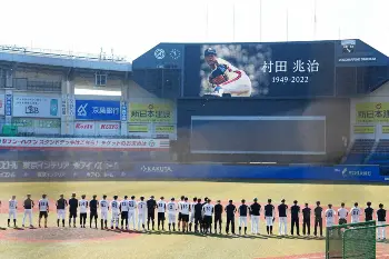 村田兆治さんの「ホーム」元川崎球場で献花台設置 関連グッズ約20点も展示