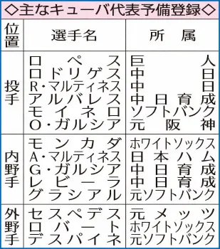 WBCキューバ代表 予備登録メンバーにモンカダ、巨人・ロペスら50人