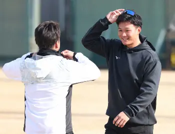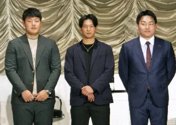 巨人・大勢、ダウンタウン浜田と初対面に笑顔 「頑張ってたら違う業界の凄い人たちにも会える」