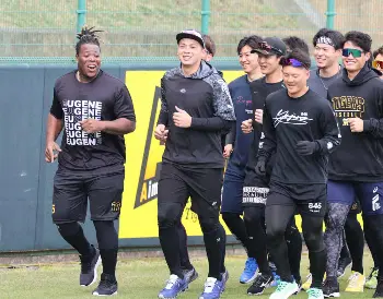「Vamos!」阪神・新外国人ミエセス ランニング先頭で声出しいきなり人気者 合同自主トレで虎1号