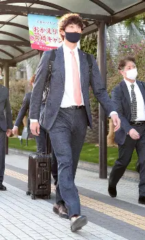 巨人ドラ1・浅野 新調スーツでキャンプ地宮崎入り「プロ野球選手になった実感が湧いてきた」