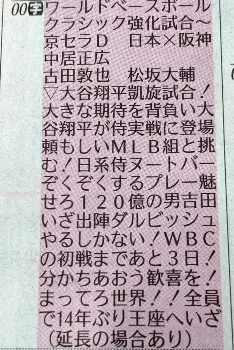 韓国も大谷に興味津々 プールB最大のライバル メディア“居残り”侍視察