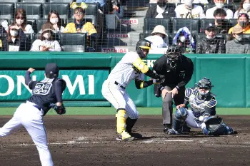 阪神・佐藤輝 粘って2四球 プロ3年目でオープン戦初盗塁「しっかりボールを見られている」