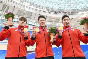 【アジア大会】3走小原逆転でV 「金メダル抱いて寝ます」 自転車男子チームスプリント