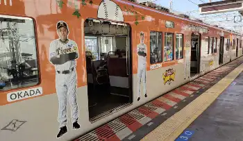 阪神電鉄 日本一記念特別車両や 連覇へ出発進行 車体外側に岡田監督と大山ら11選手等身大写真
