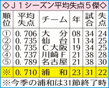 【Jトピ~データで読み解く】堅守の浦和 GK西川、CBコンビがけん引 リーグ最少22失点で記録更新も