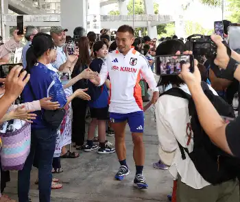 最年長の長友がミャンマーでは一番人気!花道に姿現すと、児童や保護者から大きな声援