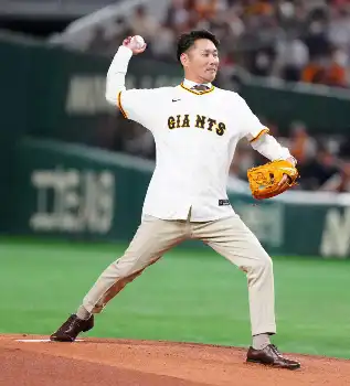 巨人OBの「くせ者」元木大介氏が「100点」始球式 マウンドに上がる前には左脇腹に…