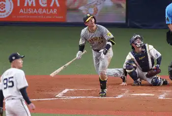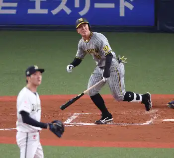 阪神・佐藤輝 攻守に“紙一重” 天井に特大ファウルも無念の空振り 守備でも内野安打許す