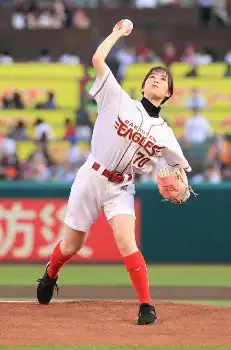 菜七子 始球式でワンバウンド投球に「ギリギリ届かなかったので悔しい」
