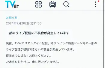 TVer「不具合が解消」一部ライブ配信が1時間以上視聴できず「バレー見られない」の声上がっていた