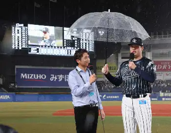 西武・渡辺 緊急降板も傘とマイクで笑顔「やっと1勝できたので、いい流れに乗れればうれしい」