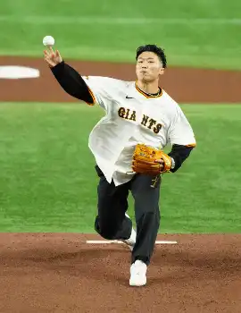 柔道・阿部一二三 始球式で123キロ狙いも87キロに苦笑い「でも、凄くいいコースに投げられた」
