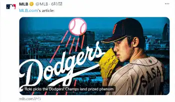 佐々木朗希のドジャース入団 MLB公式トップページに「最も電光石火の球を持つ投手の一人」
