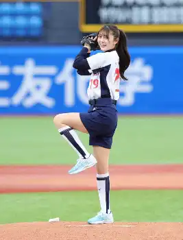 石川さゆりのめいでミス日本GP&ミス着物の石川満里奈さんが始球式 ツーバンに“再登板”誓う