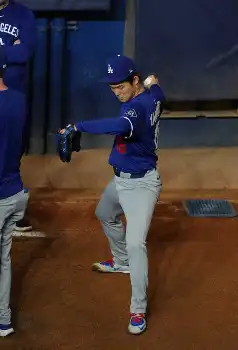 ドジャース・山本由伸 ブルペンでの投球練習で左足の着地のさせ方を微調整