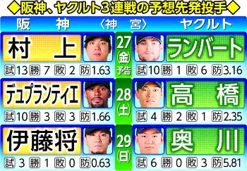 阪神 ヤクルト3連戦 予告・予想先発投手