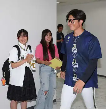 オリックス直営店でオリメンランク9位の曽谷がサイン会 メガネ姿で登場し“オリ姫”大喜び