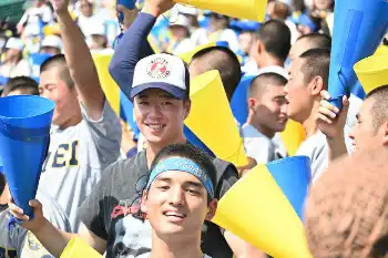 応援歌「西短ファイター」を提供したジントシオ氏がアルプス席で見守った