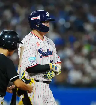 ヤクルト・村上、2打席連続死球に神宮騒然! 8回、右肘にこの試合2死球目を受け投手にらむ