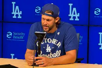 ドジャース 地区優勝へM6 大谷はマルチ二塁打で貢献 引退発表のカーショーの会見を最後方で見守る