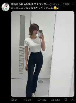 ABEMA人気アナ スタイル抜群“ギリギリ”デニムコーデ!ネット「脚長っ」「美女スペック」の声