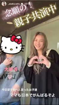 瀬戸朝香 12歳長女とインスタで「念願の!親子共演」 留学先の英国に戻り「ママも日本で頑張るぞよ」
