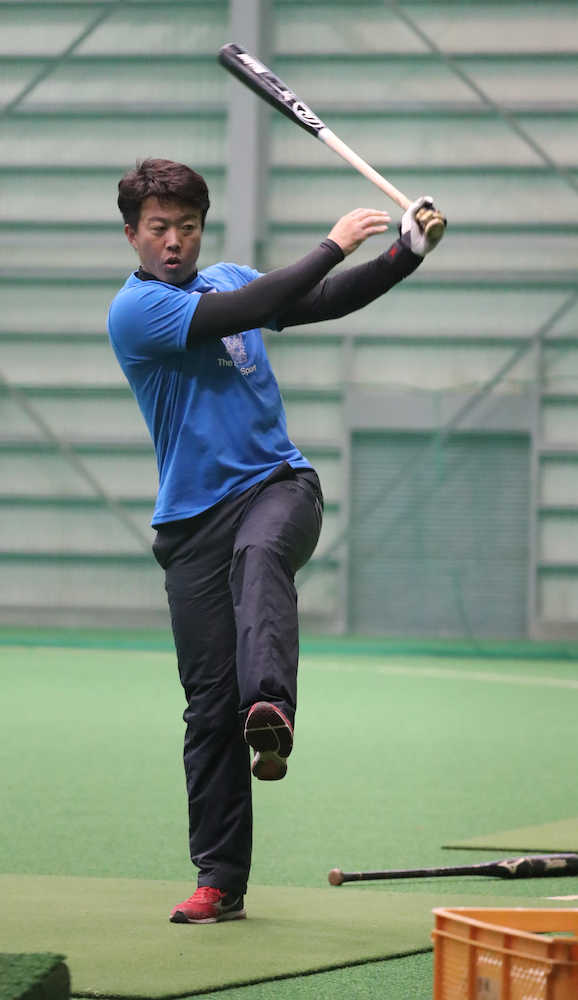 ティー打撃を繰り返す鶴岡(撮影・沢田 明徳)