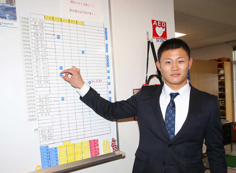 二塁送球1秒72と強肩が武器の将来の正捕手候補は「自分の人生を幸せにして成功したい。プレーはもちろん、人間力向上も掲げたい」と堂々と新たなステージに飛び込んだ。