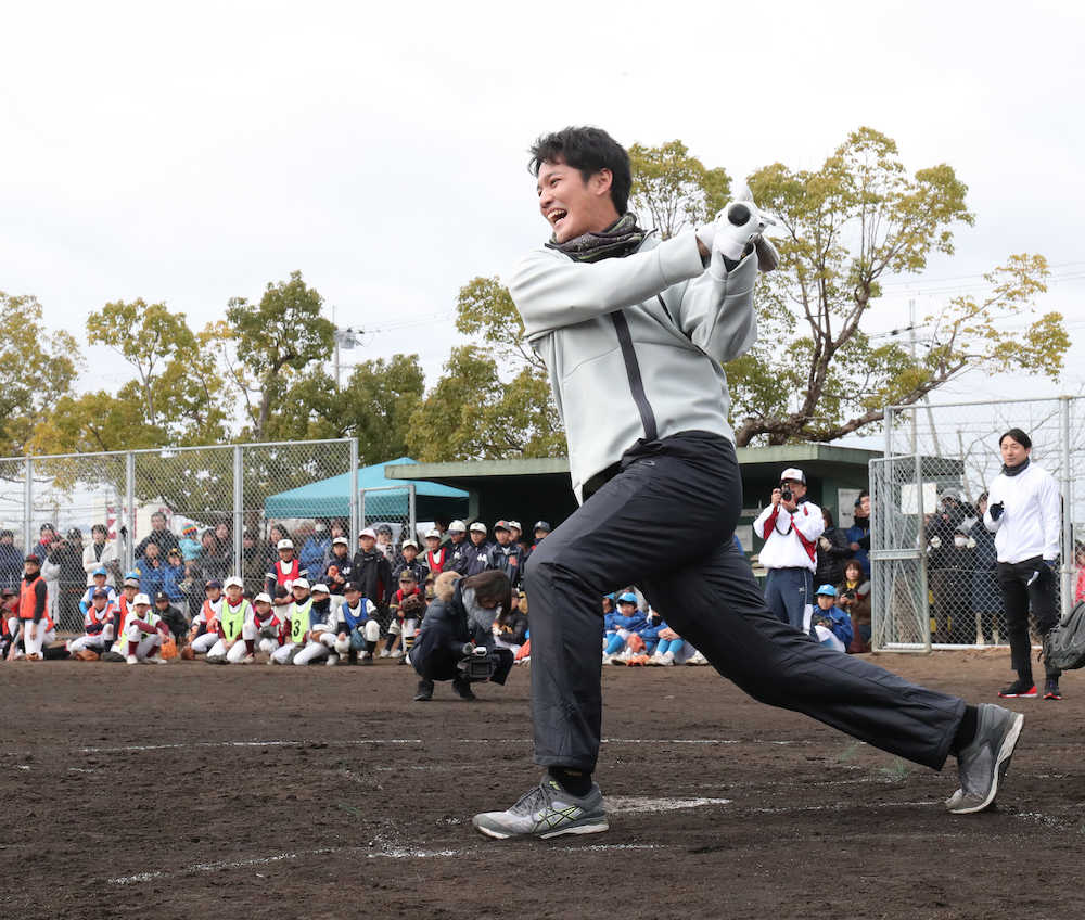 根底にあるのは、野球振興への強い思いだ。「どんどん子供が減っていく中で、野球は見るスポーツとしては人気ですけど、やるスポーツとしては落ちてきている」と危機感を抱く。野球人口減少に歯止めをかける一環として、この日は契約するゼット社の協賛も得て、小野市と近郊の10チーム、小学6年生約75人を相手に野球教室を開催。キャッチボール指導、自らノッカーとなっての守備練習、夢の1打席対決などで野球の「楽しさ」を伝え、多くの笑顔を咲かせた。