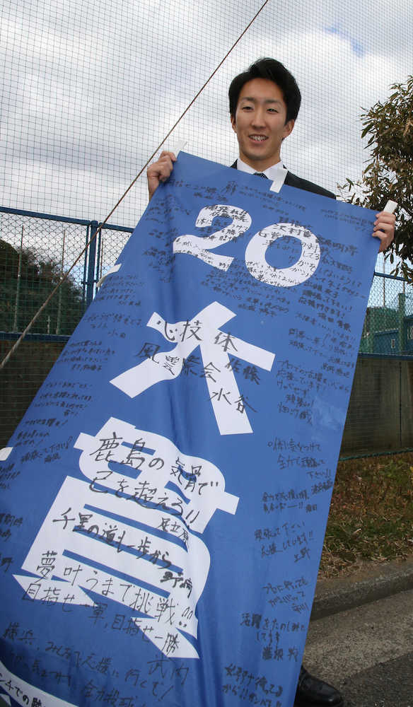 大切そうに寮に持ち込んだのは、新日鉄住金鹿島の同僚が贈ってくれた寄せ書きだ。「部屋に飾りたい。鹿島のみんなのためにもしっかり頑張りたい」とお世話になった会社に恩返しの活躍を誓った。