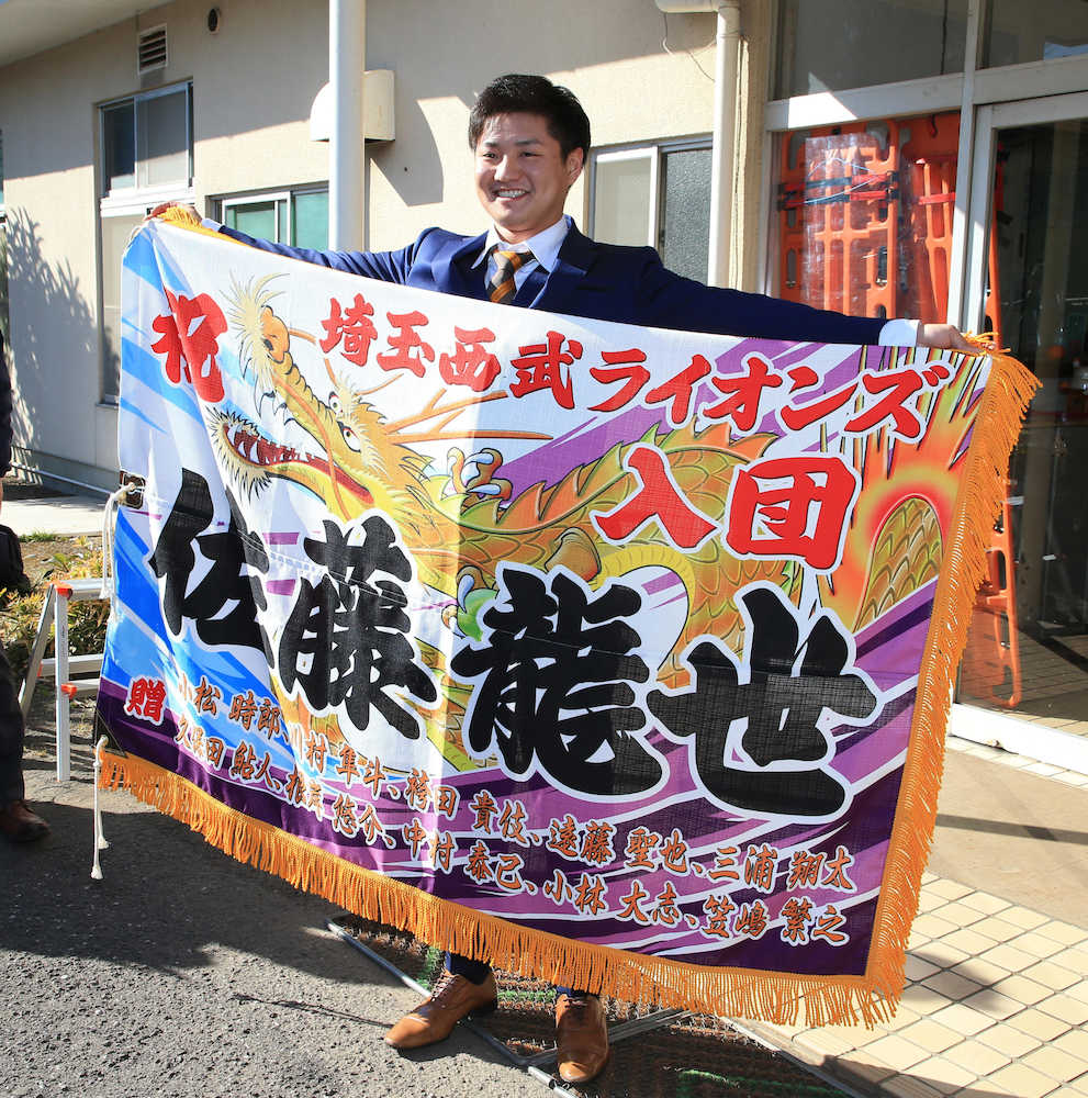 西武ドラ7佐藤は大漁旗持参「ハツラツとしたプレーを」