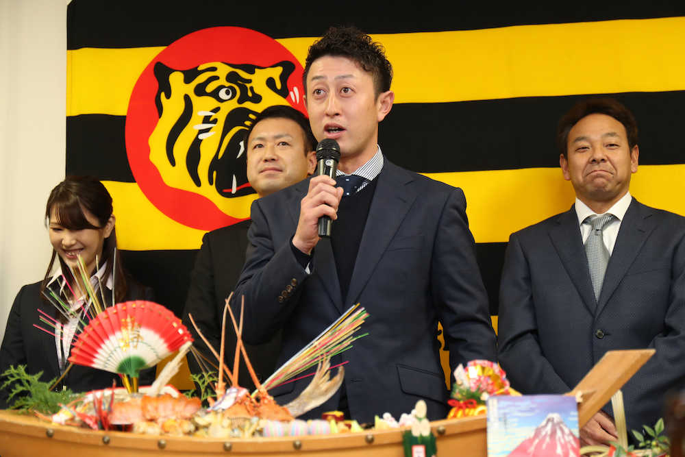 「引退会見にお集まりいただき、ありがとうございます。子供たちを育てるということですが(将来は)タイガースに入ってもらって、ファン感謝デーでは僕以上のMVPを獲ってもらいたいと思います」
