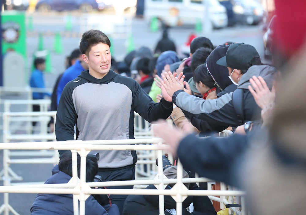 日本ハム 吉田輝星らにファン700人!新人自主トレ、練習後にはハイタッチサービス