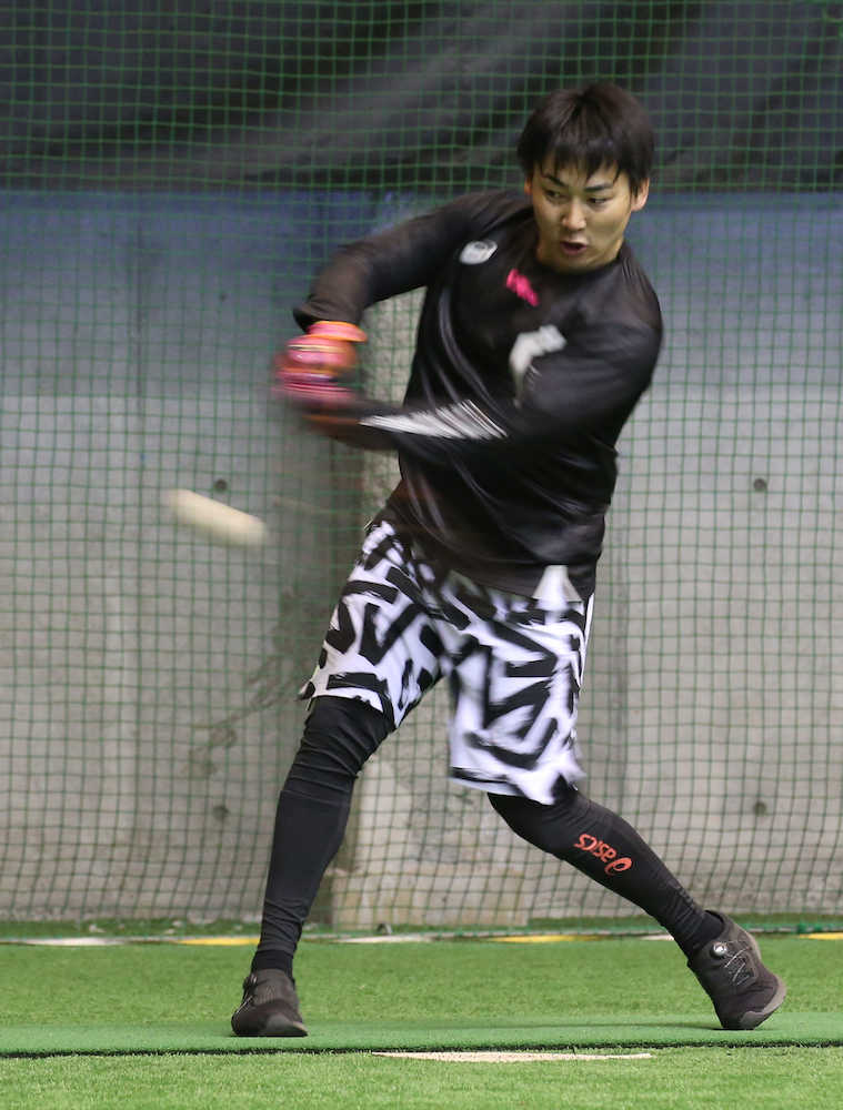 巨人・陽岱鋼 自主トレで緩いボール打ち込む 軸がぶれないように下半身に意識を集中
