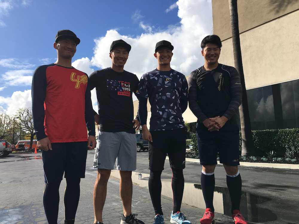 これぞ、大将の心意気だ。ヤクルトの青木が12日(日本時間13日)、後輩の上田、西浦、宮本、村上とともにロサンゼルス近郊で行っている自主トレを公開した。雨のため室内での練習となったが、自ら打撃投手を務めるなど精力的。バットでも快音を響かせ「体力は全然負けていない。俺が一番動けている」と胸を張った。