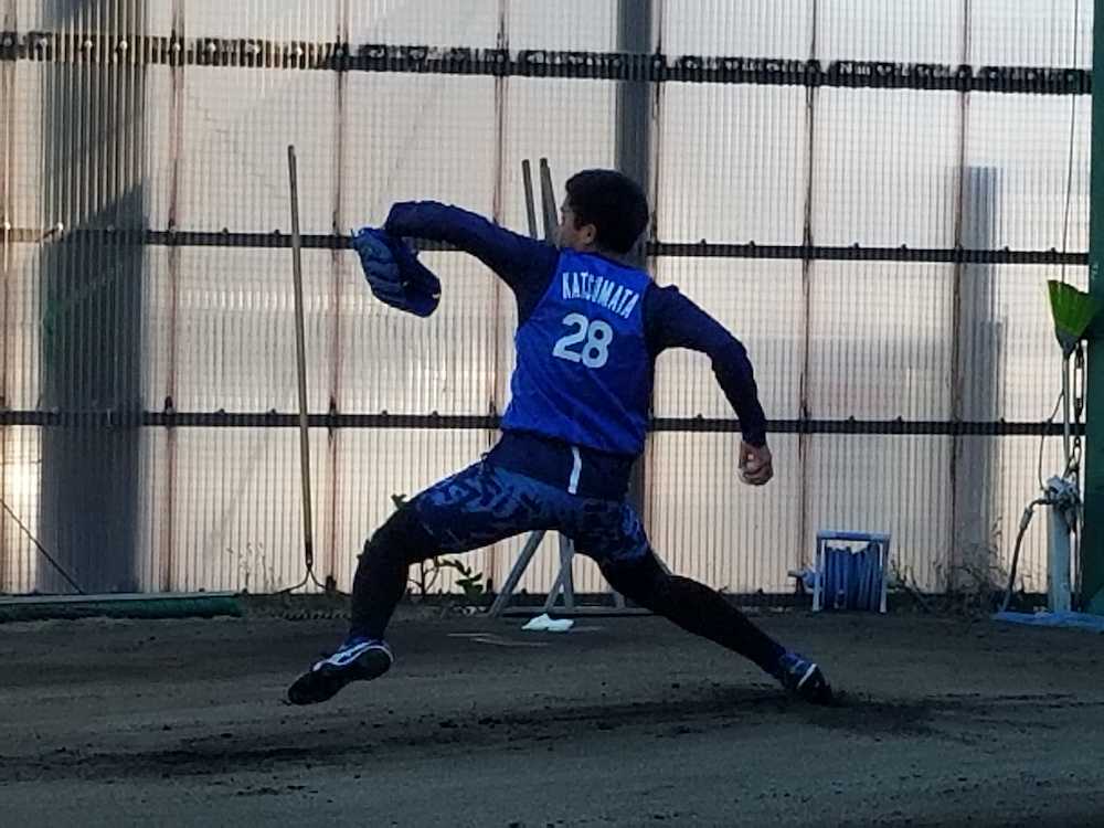 DeNAのドラフト4位・勝又温史投手(18=日大鶴ヶ丘)が、ベイスターズ球場での新人合同自主トレで2日連続のブルペン投球を行った。