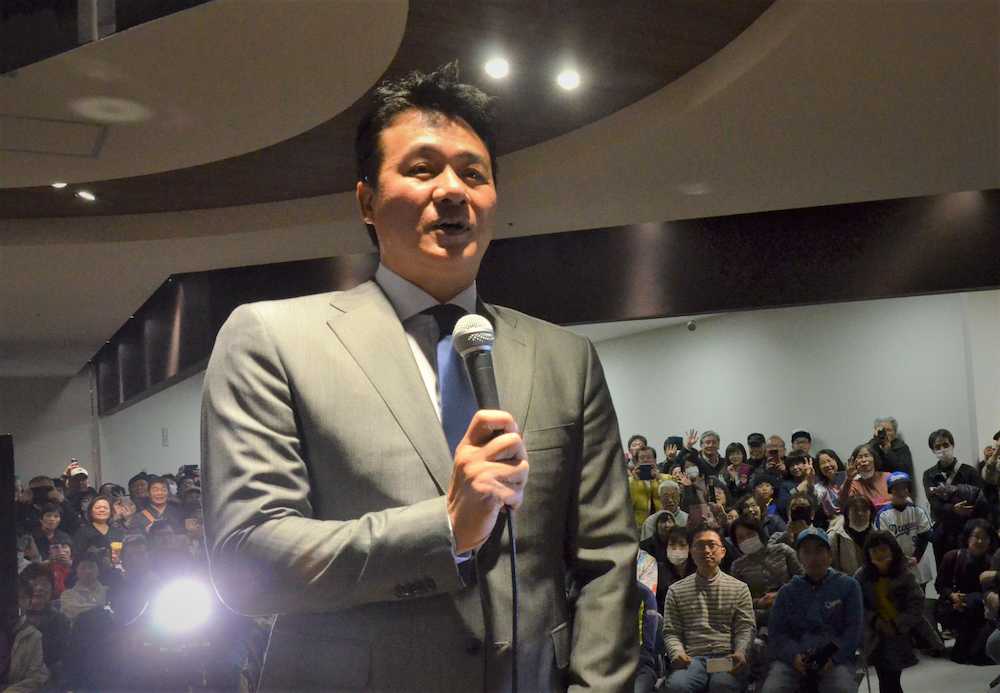 中日の与田剛監督(53)が14日、名古屋市港区の「ポートウォークみなと」でトークショーに参加した。肩幅が広いことで知られる指揮官が、肩幅にまつわる秘話を明かした。