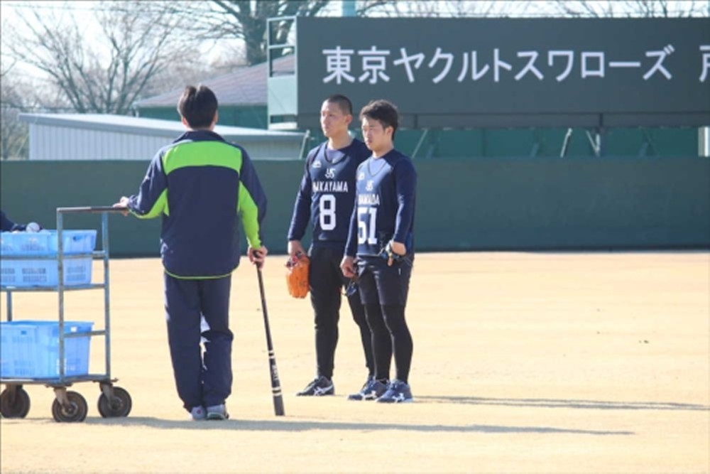 学校で練習していた昨年12月には同校を訪問した今宮から「厳しい世界だけど、頑張れ」と声を掛けてもらった。大先輩と同じ舞台に立てる日を信じ、新人合同自主トレでも精力的に汗を流す。