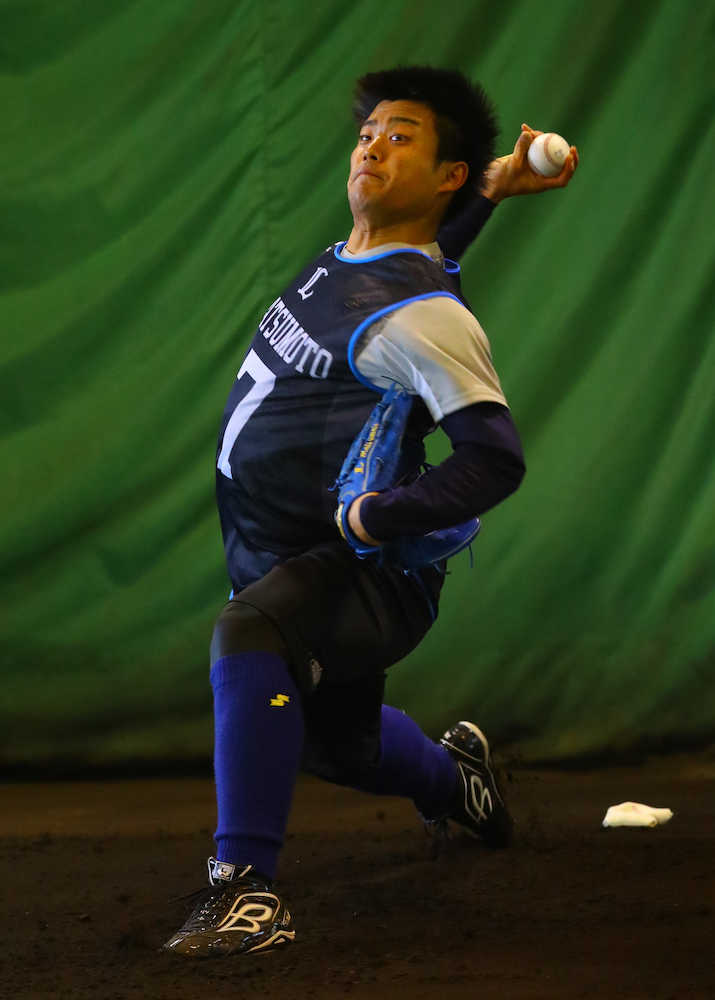 日体大同期のロッテ・東妻が4回ブルペン入りするなど、他の新人の調整を新聞などで目にする。刺激を受けながらも「触発されないように。焦らないように」とマイペースを貫く考え。17日に春季キャンプA班(1軍)スタートが内定し「一層緊張感が増した。キャンプ最初からしっかり投げ込めるようにしたい」と意気込んだ。 (武本 万里絵)