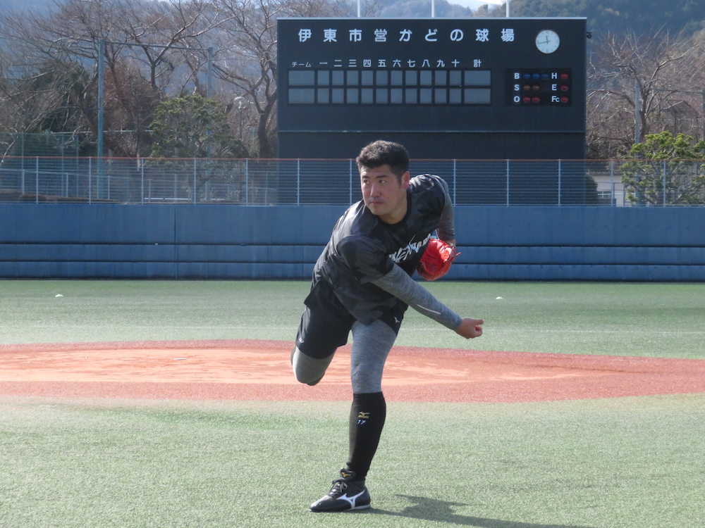 巨人・大竹「覚悟」の7時間練習 「地獄キャンプ」の地、伊東で自主トレ