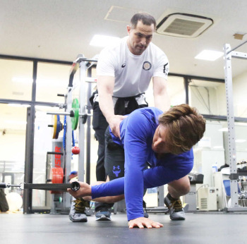オリックスの吉田正尚外野手が21日、東京医科歯科大学で自主トレを公開した。同大では3年連続で、陸上男子ハンマー投げのアテネ五輪金メダル室伏広治氏から指導を受け、この日は「胸椎周りの柔軟性」などを中心としたトレーニングで汗を流した。