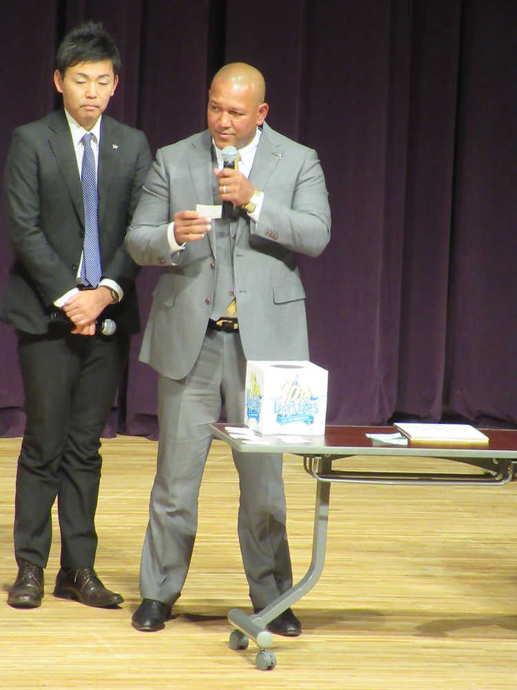 DeNA・ラミレス監督が新潟市内でトークショーに参加し、現時点での開幕オーダーを披露した。